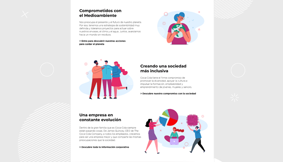 Esta información se encuentra en su página, Coca Cola es una empresa que esta involucrada en el cuidado del medioambiente y como he dicho antes incentiva a los consumidores a estar juntos.